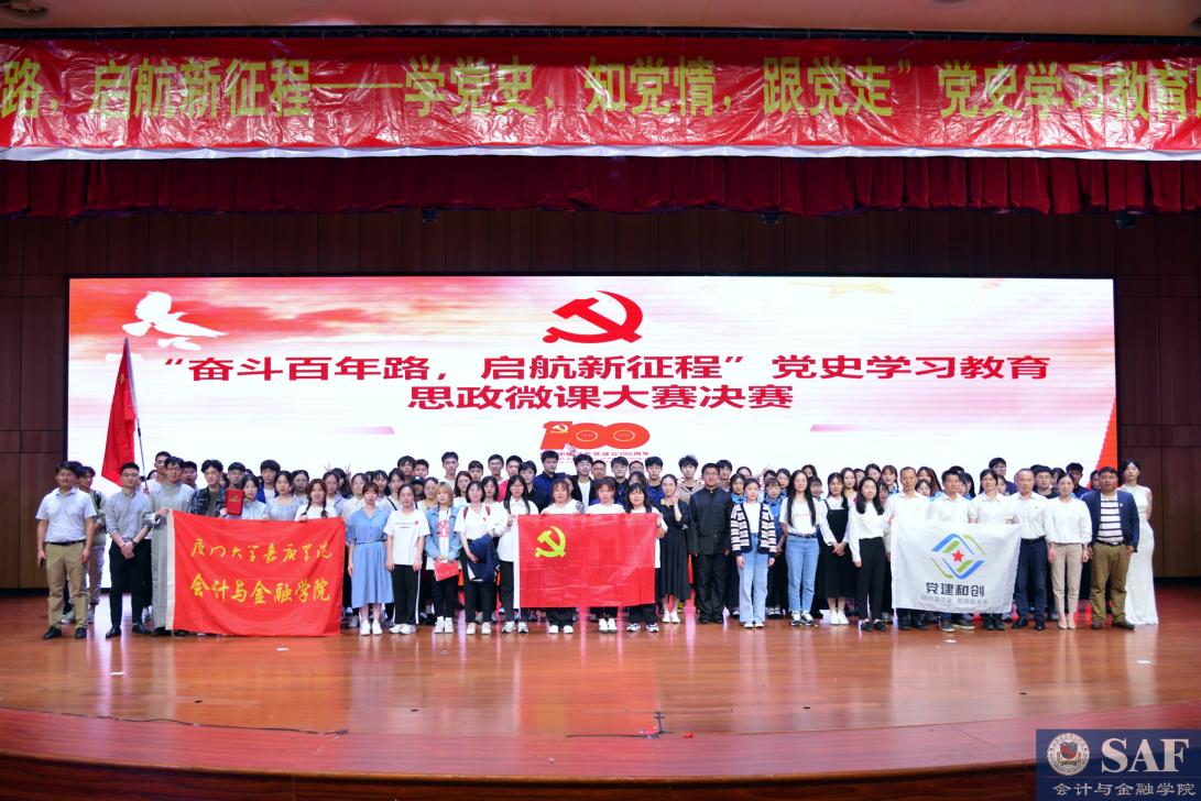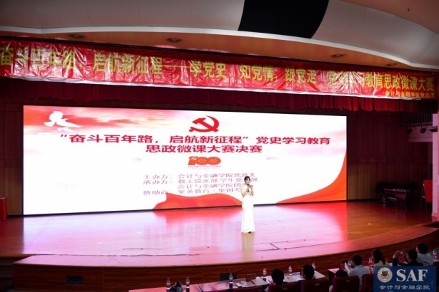 本次大赛以“奋斗百年路,启航新征程—学党史,知党情,跟党走”为主题,通过初心使命篇、艰苦奋斗篇、筑梦新时代篇三个篇章打造富有引领性、成长性、生动性的思政微课,全力营造党史学习教育的氛围,引导青年学生们铭记党史,努力学习科学文化知识,练就过硬本领,用青春谱写时代华章。至此,会计与金融学院“奋斗百年路,启航新征程”思政微课大赛圆满落幕。