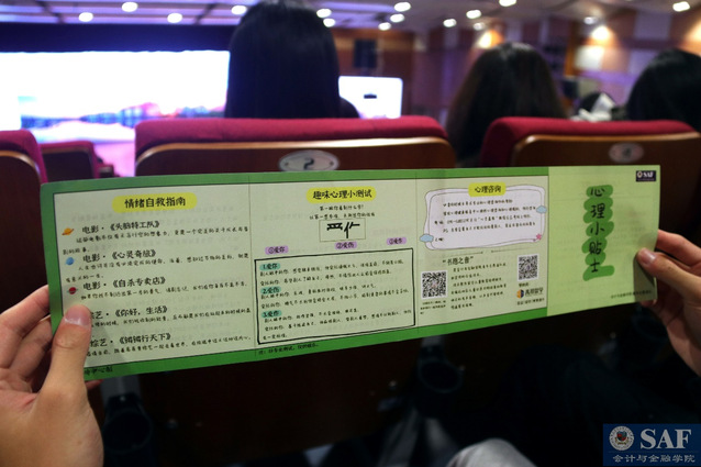 讲座开始前,工作人员在入口处为参会成员发放了趣味心理小贴士,内容包含了人际交往心理学、恋爱心理学、情绪自救指南、心理咨询求助的方式以及趣味心理测试等,以期帮助大家更好地理解讲座的内容。