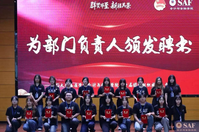 此次成立大会不仅是对过去工作的总结,更是对新篇章的展望。厦门大学嘉庚学院会计与金融学院(SAF)第十届团学组织将在学院团委的领导下,继续践行“服务师生、锻炼自我、团结协作、追求卓越”的宗旨,砥砺奋进,共创未来。至此,厦门大学嘉庚学院会计与金融学院(SAF)第十届“群贤毕至·新程共荣”成立大会圆满结束!