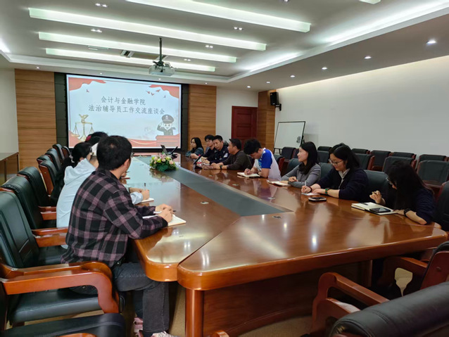 为深入推进平安校园建设,全面落实“一院一警”共建机制,切实保障师生财产安全,构建无诈校园,3月27日,会计与金融学院在经管大楼A415会议室组织召开法治辅导员工作交流座谈会。学院“一院一警”法治辅导员石志谋警官作专题发言,党总支书记甘友成、全体辅导员、学生干部及反诈社团代表参加座谈。